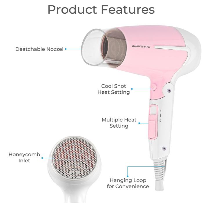 Drying and styling your hair becomes convenient with the Ambrane AHD-021 hair Dryer as it is technologically equipped to offer warm as well as cool airflow to meet your hair styling and drying needs.
