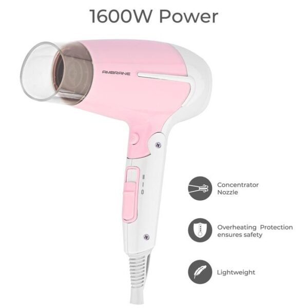 • 1600W Rated Power Input – This hair dryer comes equipped with 1600 W power input