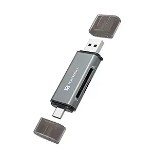Portronics Mport 30 (POR 1679) Card Reader, USB Type C and USB A Hub Adapter with Dual Connectors supports SD and Micro SD Memory Cards for Cameras, Laptops, Tablets, Smartphones and MacBooks (Grey)
